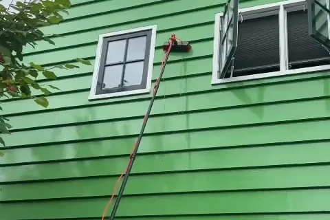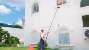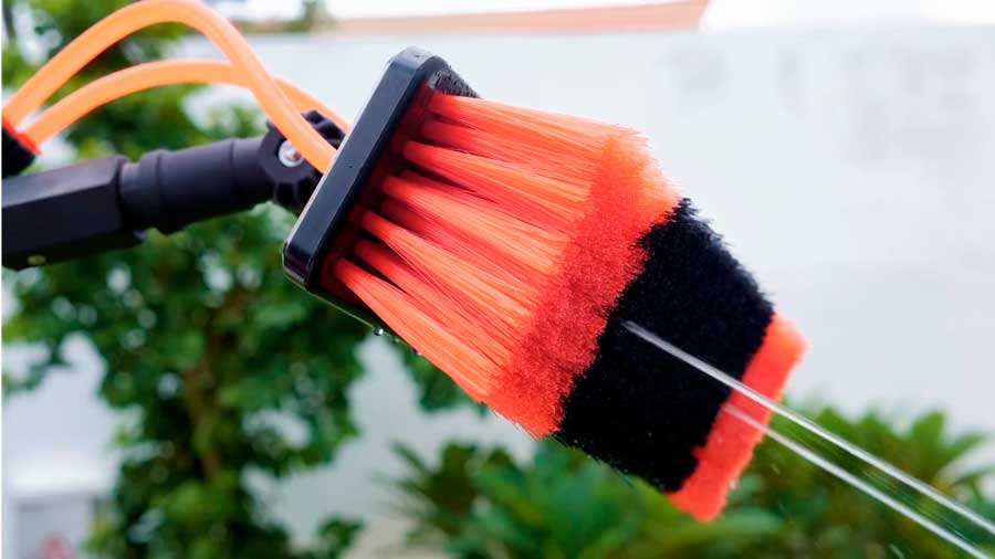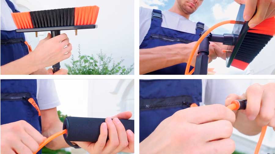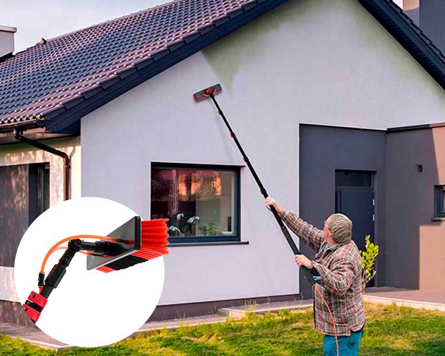 How would you clean a mouldy high wall or window? You would normally need a scrubbing brush, a bucket of water, detergent and a ladder, right? That’s clumsy and risky!